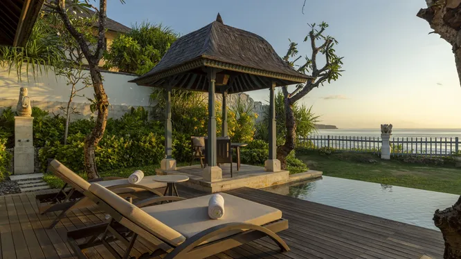 Bali’nin en prestijli yerlerinden biri olan Uluwatu Plajı’nda yer alan Jumeirah Bali, konuklarını bekliyor. Burası sadece bir tatil köyü değil; gerçek bir sığınak. Bali’nin güneybatısındaki Pekatun bölgesinde yer alan tesis, Hindu-Cava kültüründen esinlenilmiş tropikal yeşilliklerle çevrilidir. Konuklar, dinlenmek ve yenilenmek için eşsiz bir fırsattan yararlanabilirler: teraslı kraliyet bahçelerinde gezintiye çıkabilir, antik Bodhi ağaçlarının bulunduğu bir koruda meditasyon yapabilir veya Majapahit İmparatorluğu’nun efsanevi Kolam Segaran gölünden esinlenerek tasarlanmış bir havuzda serinleyebilirler. Özellikle dikkat çeken bir diğer nokta ise, aydınlanmanın manevi sembolü olan 120 yıllık Bodhi ağacıdır. Tesiste 123 adet bir ve iki yatak odalı villa ve lüks dört yatak odalı Royal Water Palace bulunmaktadır. Her oda Hint Okyanusu ve tropikal bahçeler manzarasına sahiptir. Villalarda ayrıca özel havuz ve muhteşem gün batımlarını veya pitoresk bahçe manzaralarını izleyebileceğiniz açık yaşam alanı bulunmaktadır.