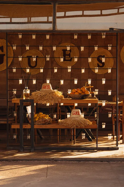 2025 sonbaharında GUESS, White Camel tatil köyünü kendine özgü tasarımıyla dönüştürdü. Bu, markanın sıra dışı iş birliklerine ilk girişimi değil; Güney Afrika’daki bir oyun rezervinde açılan GUESS Lodge pop-up otelini veya Akdeniz’deki markalı yat Clovis’teki maceraları hatırlıyor musunuz? Ancak Fas’taki yeni proje özellikle sembolik: Ülke, markanın yaratıcı direktörü Paul Marciano’nun doğum yeri.